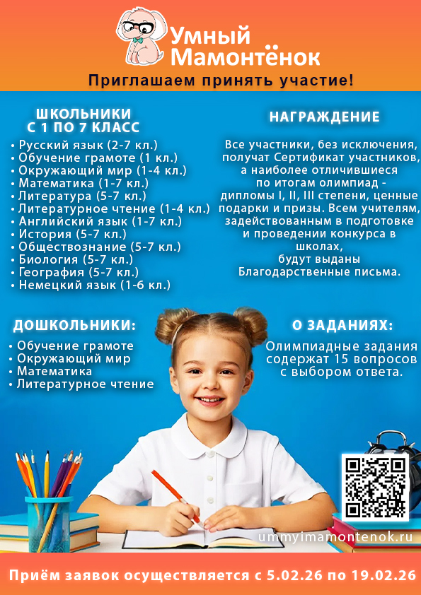 Олимпиада "Умный Мамонтенок" проводится по следующим дисциплинам: